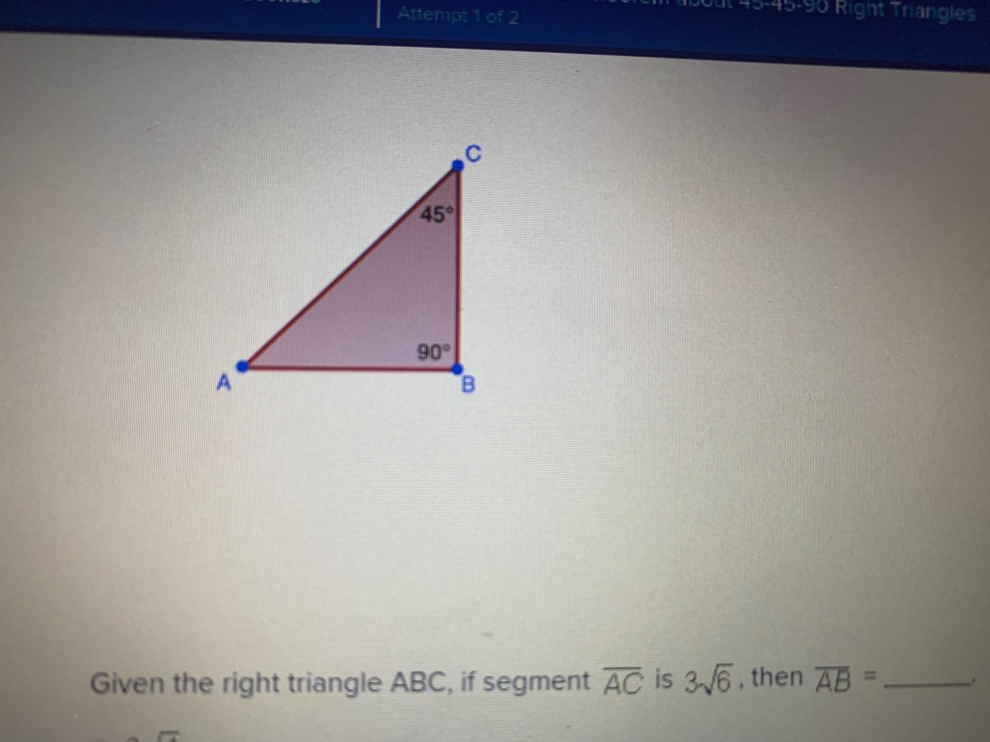 Since, the given triangle is 45-45-90 triangle