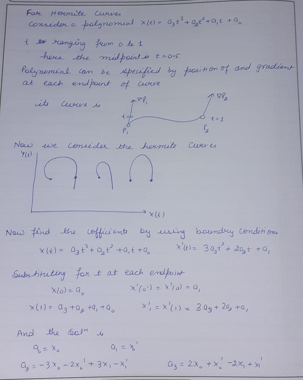 Use the Hermit method to calculate a curve (parametric equation) for the cases where the known quantities are the starting and e