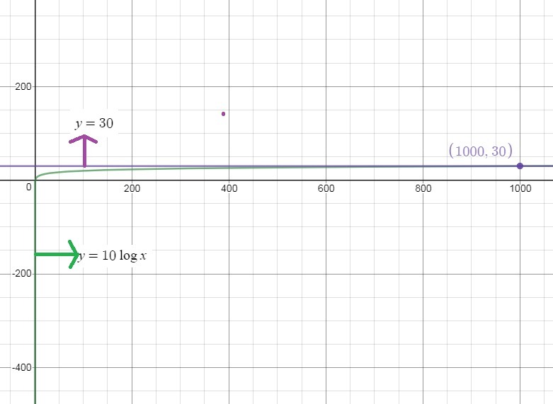 Graph is attached which shows their intersection at (1000,30).