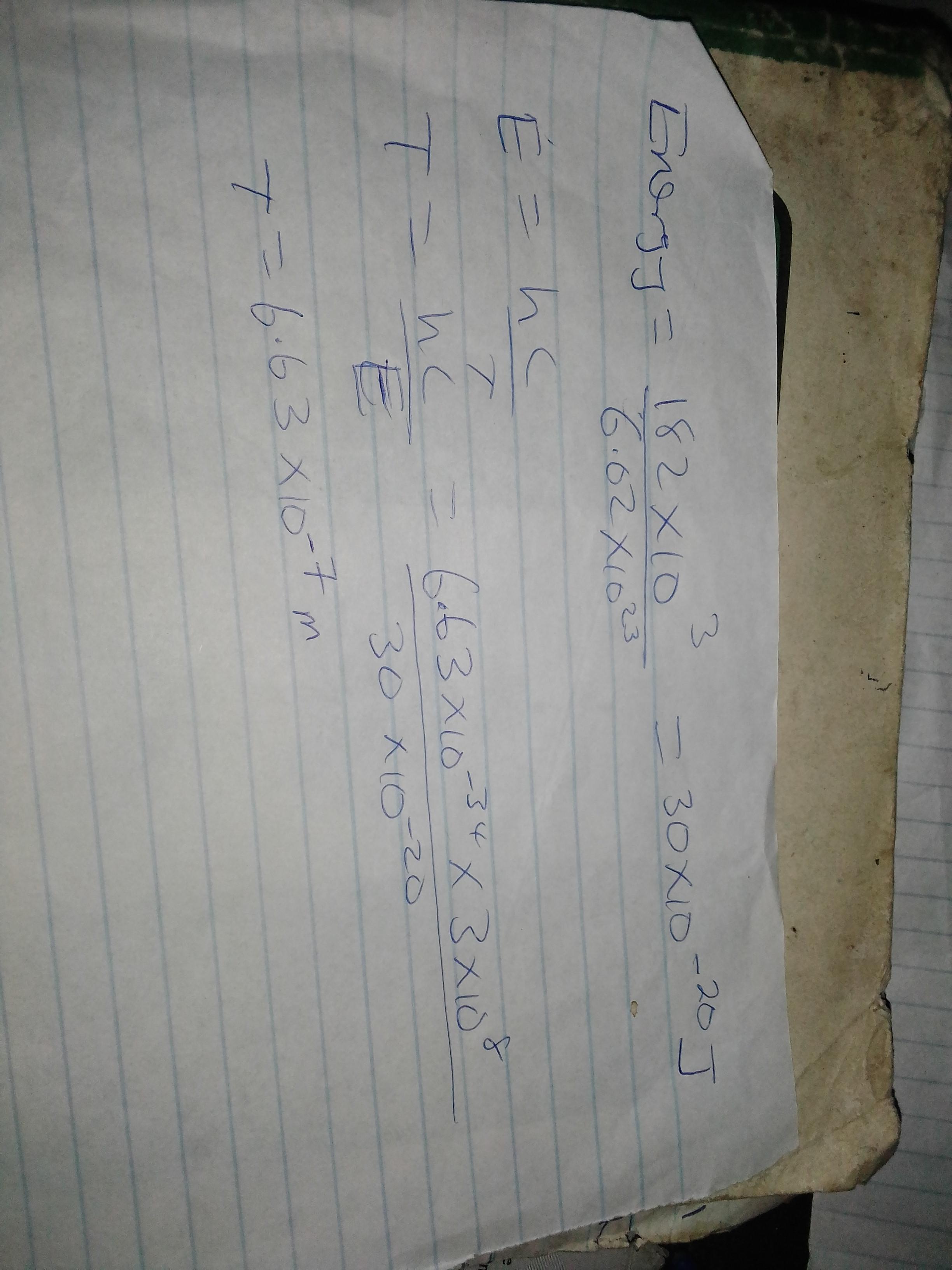 The energy of one mole of the compound is obtained by dividing by the Avogadro number. Then the wavelength is obtained from