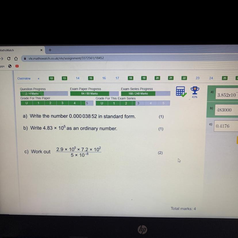 I think the answer would be 15, 8•15=120, leaving 3 points left which would be an multiple choice question, hope this helps:))