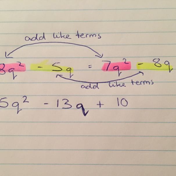 The other like terms are -5q and -8q because they both have ‘q’