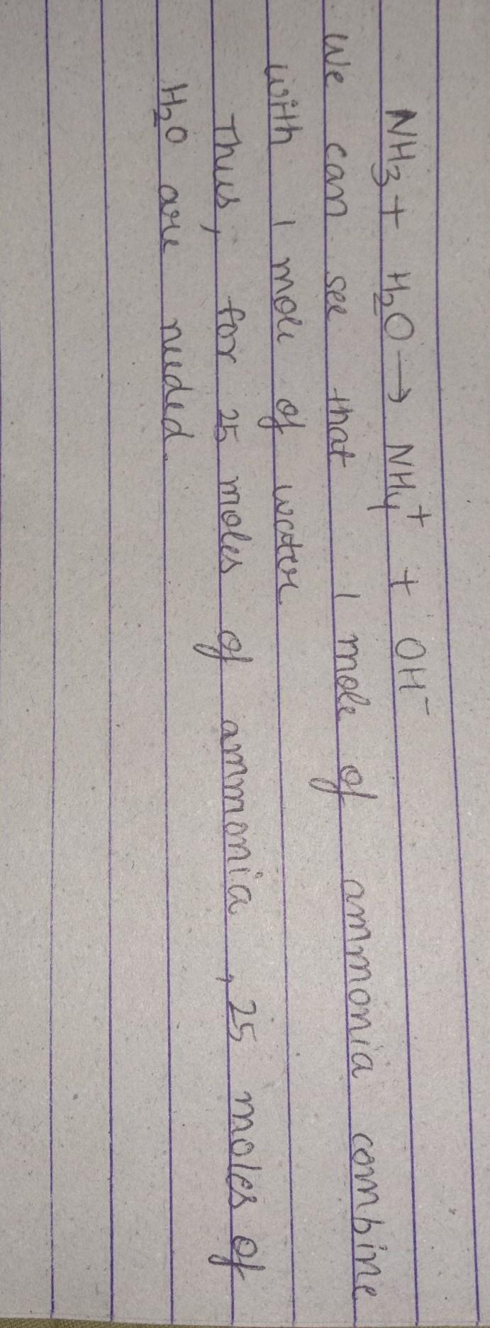 hence 25 moles of water are required to completely react with 25 moles of ammonia