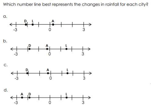 Which number line best represents the changes in rainfall for each city?