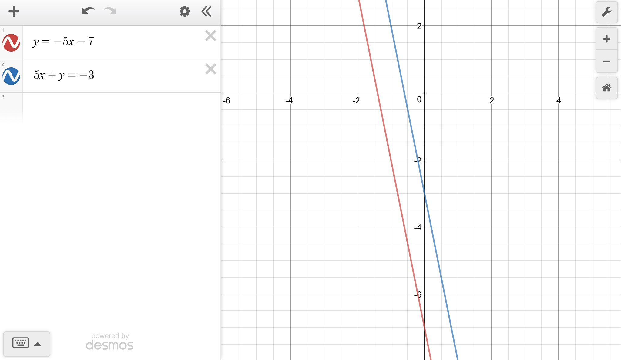 The graph is the line y = 2/3 - 4. And the first answer describes the same line multipled by 3.