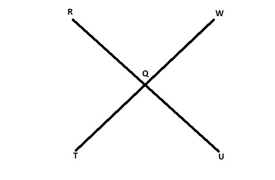So, ∠RQW and ∠TQU are the only pairs of vertical angles, as they have no common pair of sides except one point i.e.'Q' at which both the lines are intersecting.