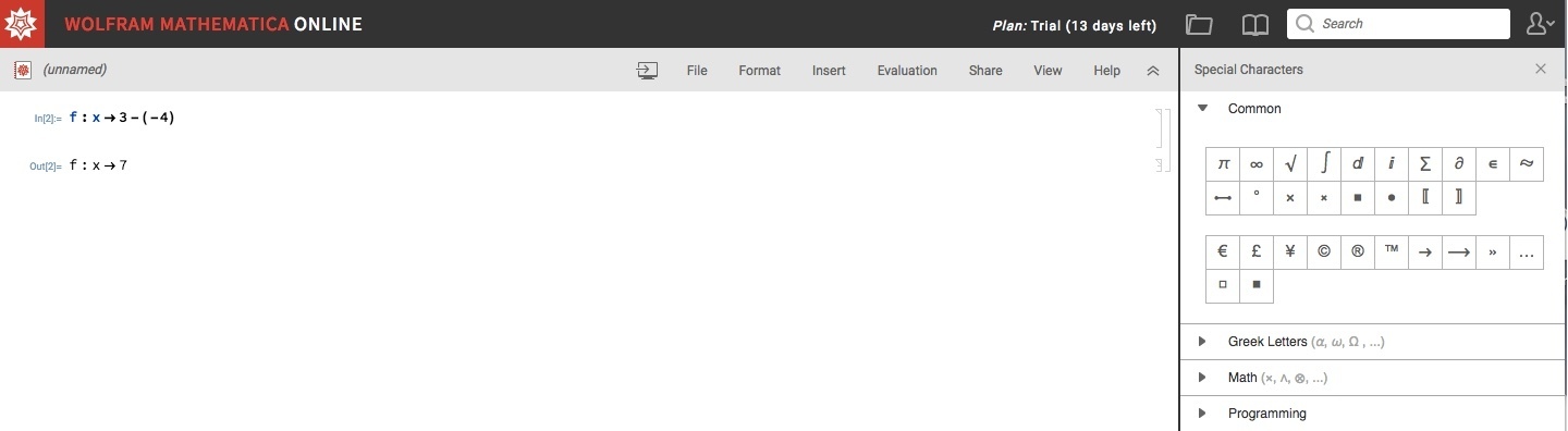 f(-4) = 3 - (-4) = 7