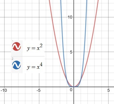 Now questions is asking about what do the graphs of the two even degree functions y=x^2 and y=x^4 have in common.