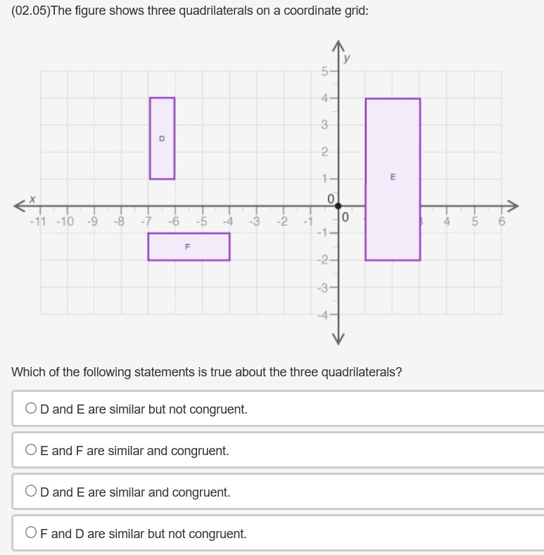 Option #4 is not correct because it says that "F and D are similar but not congruent." This is not true since they are the same shape and size. Only their orientation is different, which makes them congruent.