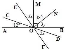 Find x and y. Lines AB , CD , and EF are straight lines.