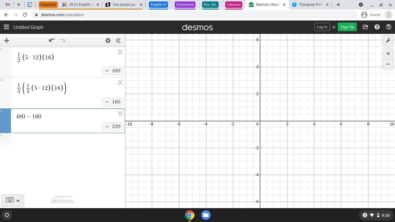 <h3>Volume for Triangular prism: (1/2)(b)(h)(H)</h3><h3>Volume for Triangluar pyramid: (1/3)(1/2)(b)(h)(H)</h3>