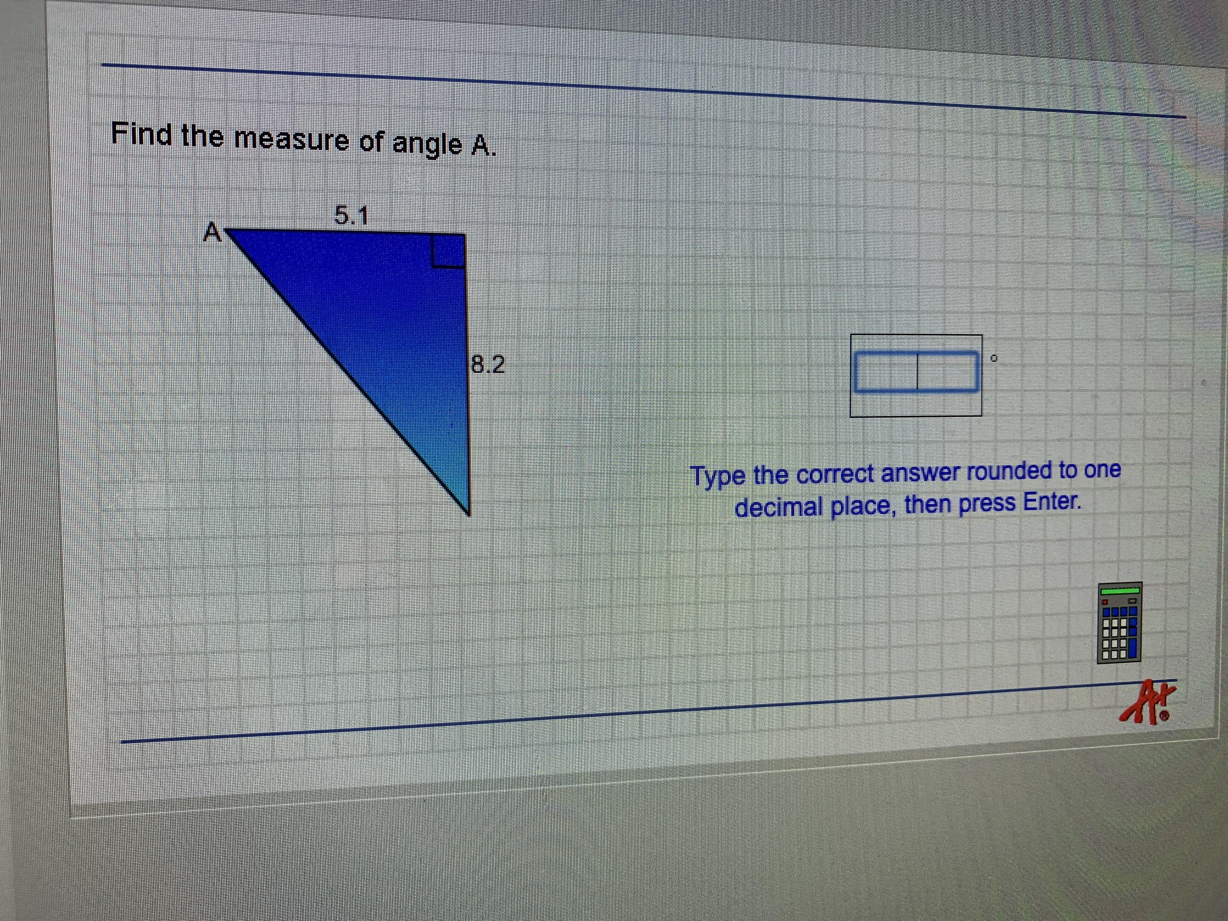 Since the triangle is right use the tangent ratio to solve for ∠A