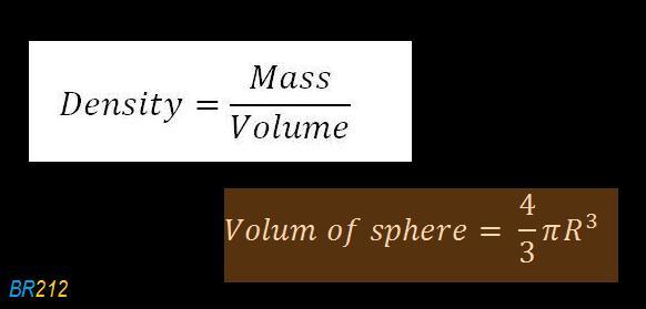 <u>Keywords:</u> density, our sun will end up as a white dwarf, reduced to about 15,000 km in diameter, mass, volume of the sphere, in about 5 billion years, at the end of its lifetime