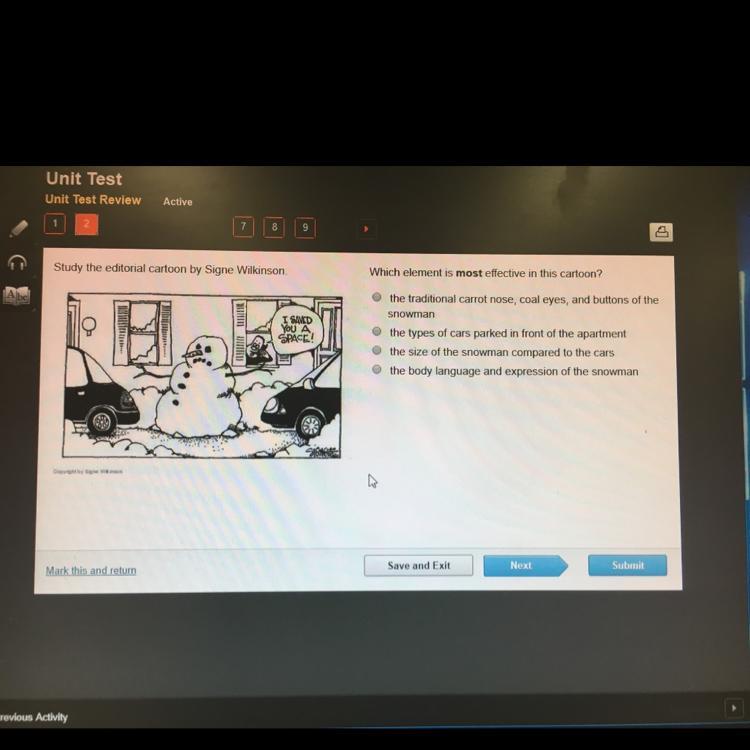 The body language and expression of the snowman are the most effective element in this cartoon because it is through this that we understand what the message and the story that this cartoon wants to go through. Without the body language and expression of the snowman would just be a common draw.