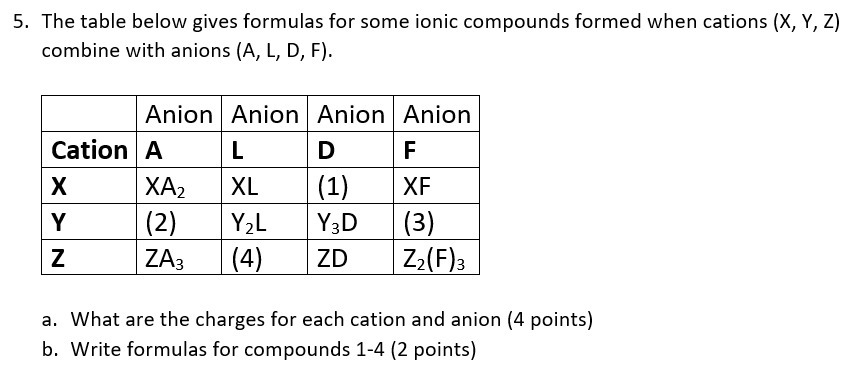 A^-1, L^-2, D^-3, F^-2 : Anion