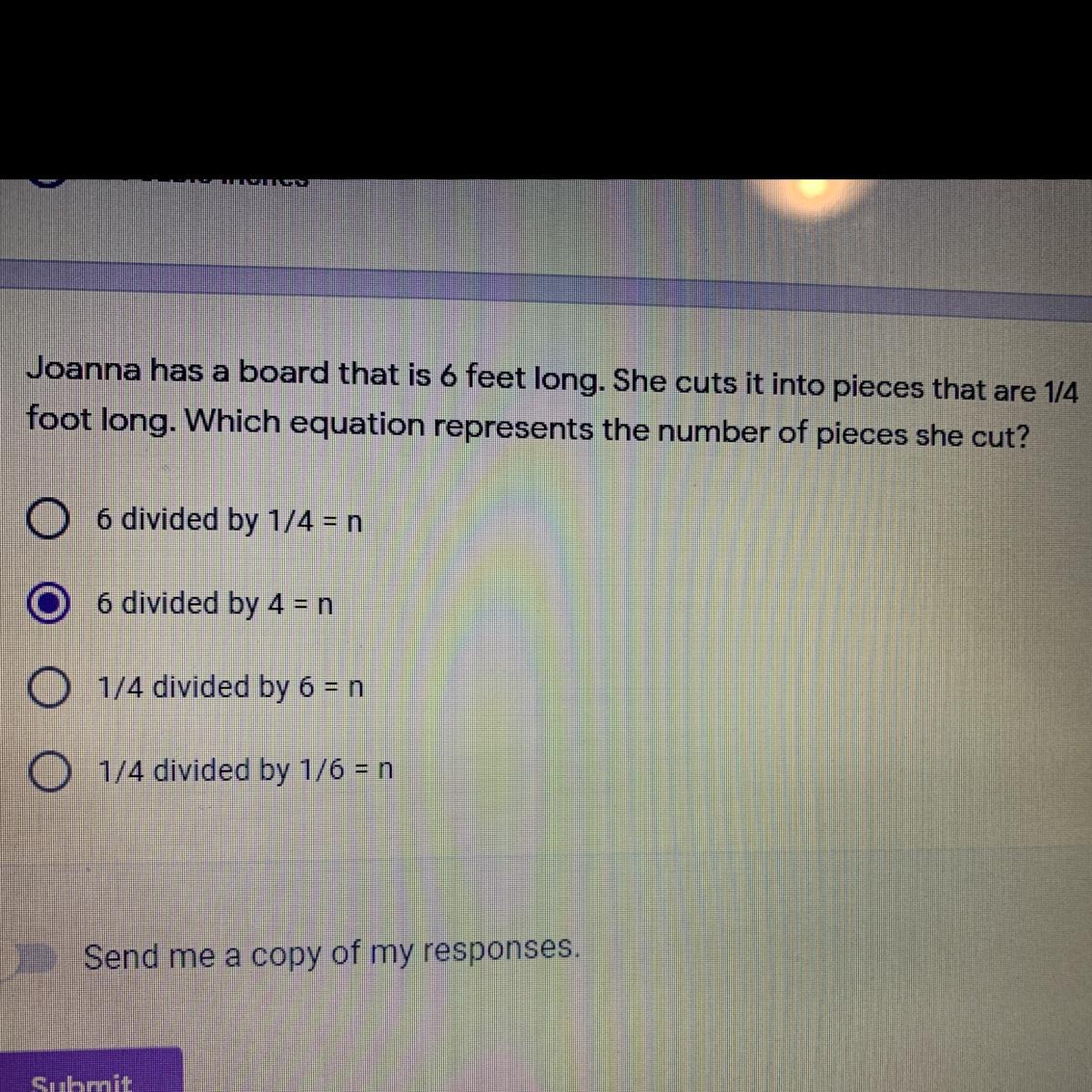 C is wrong because dividing a quarter-foot board into 6 foot pieces isn't giving you any board in the first place