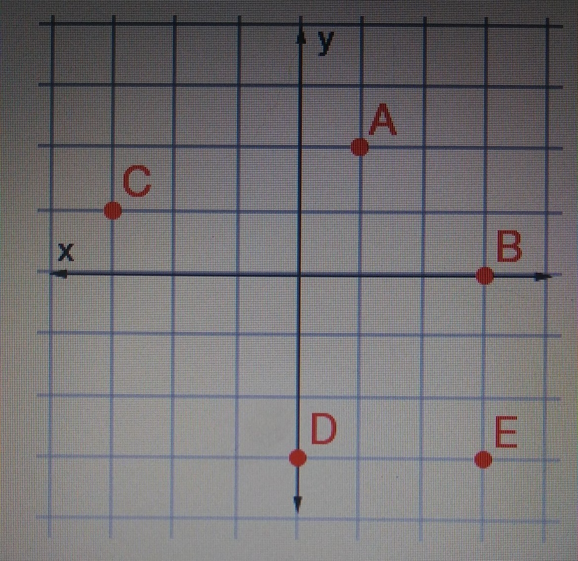Point B is located at..A)3,0B)0,3C)0,-3D)-3,0