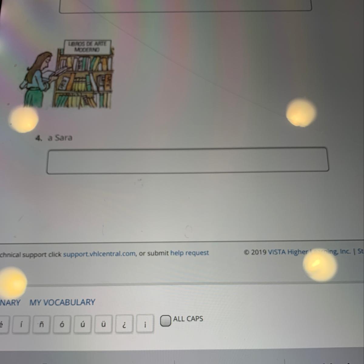 No hay ninguna lista de verbos, sin embargo, me gustaría ayudarte usando la lógica. En el cuadro, vemos a una chica llamada Sara que está leyendo algunos libros de una biblioteca. El el cuadro vemos una oración incompleta que dice: