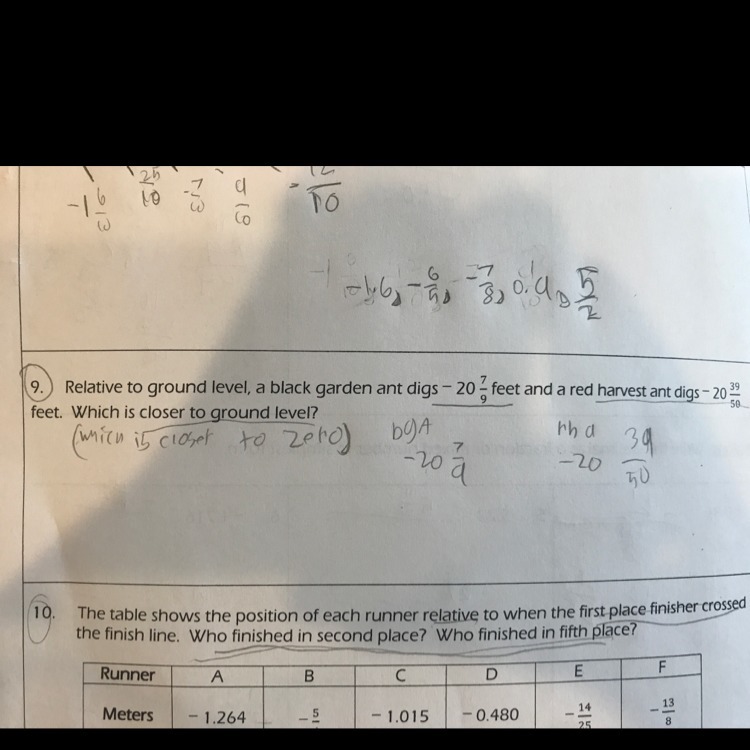 so, closer to ground level is the black garden ant at -20 7/9 ft because this is closer to 0 then -20 39/50 ft.