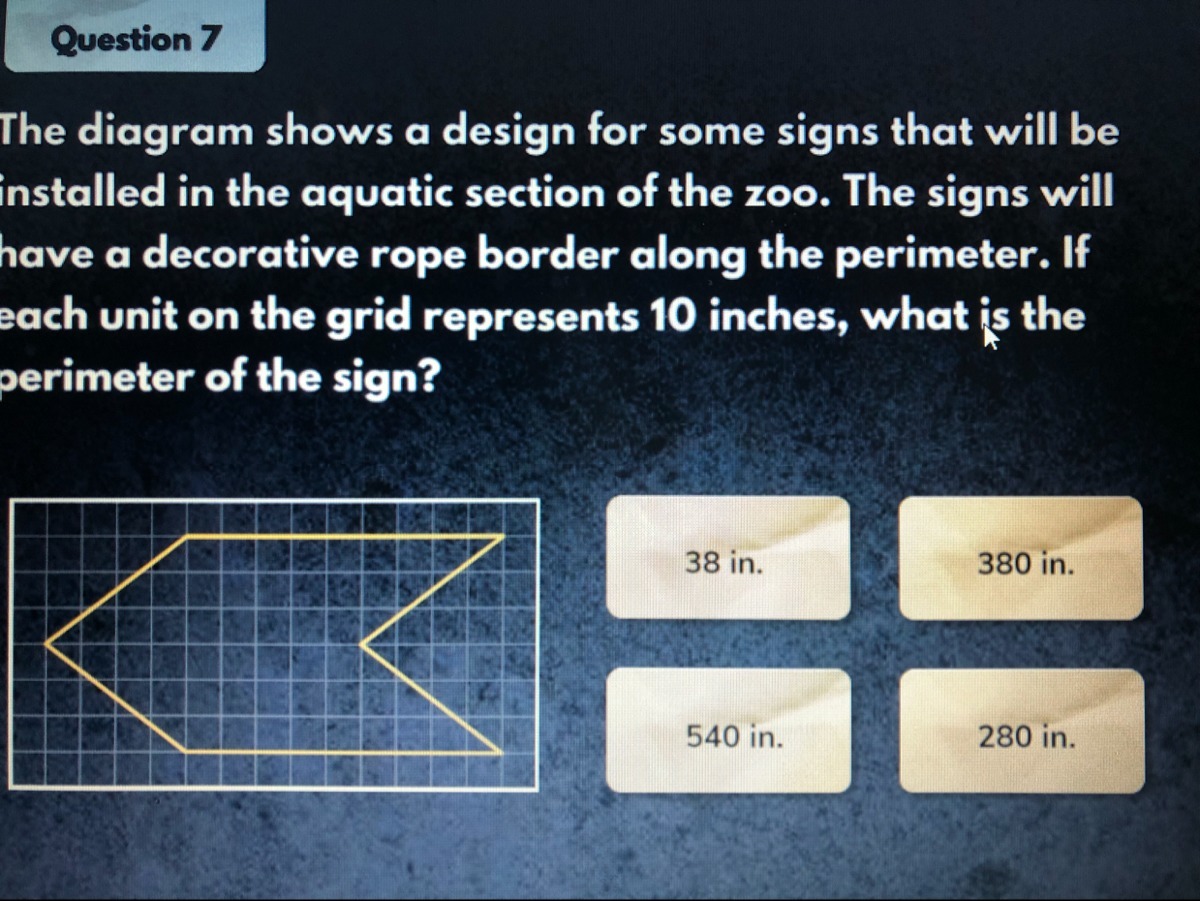 The perimeter of the sign = 180 + 200 inches = 380 inches.