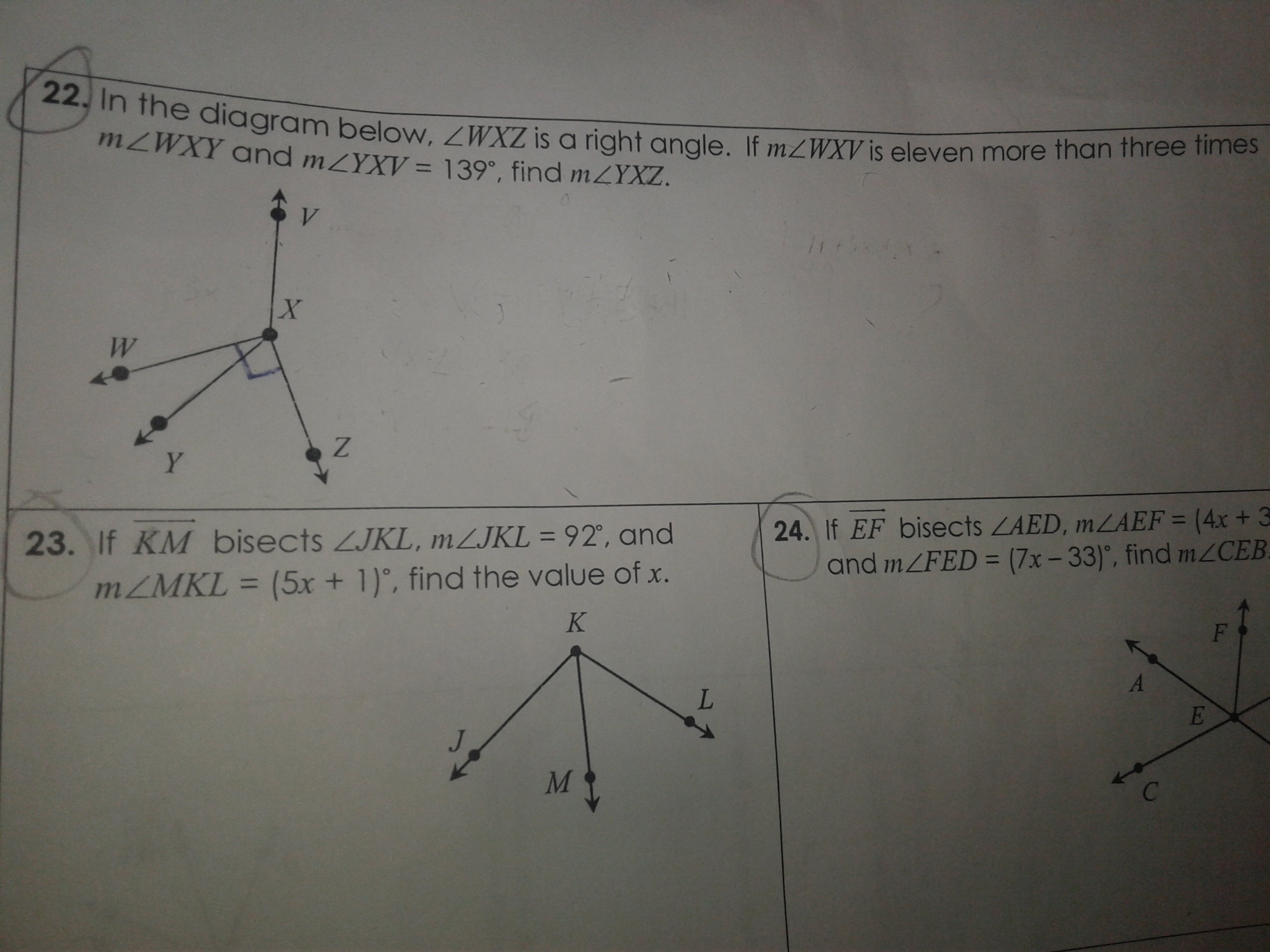 90 degrees = m<WXY + m<YXZ