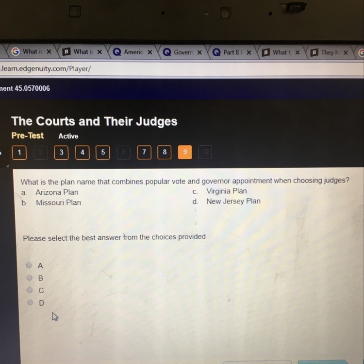 <u><em>The Missouri Plan</em></u> is a method that involves the selection of judges. This process begins with a <em>non-partisan commission</em> that reviews candidates for a judicial vacancy. After done that, the commision is in the obligation to send a list of the best candidates to the <em>governor</em>. This last one will have until 60 days to select the most suitable for the posisiton. In the case that the governor did not select the candidates, then the commission will have to decide for him. Finally, after a whole year of service from the new judge, this one will have to stand in a retention selection. This is where the popular vote comes in, here a <em>majority</em> needs to vote in favor or against the retention. If they vote against the retention then the process called as ''Missouri Plan'' begins again.