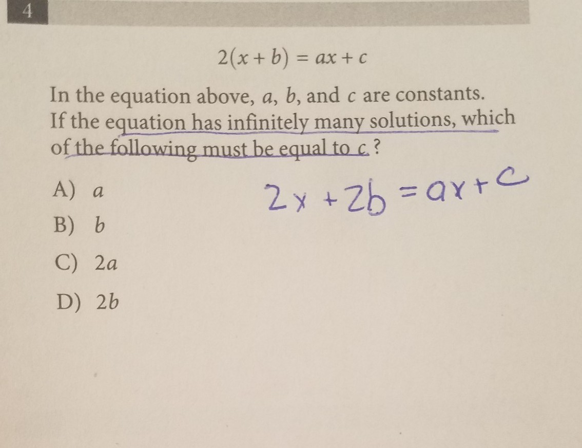 anyhow, in this case we know the equations are 2(x+b) and ax + c, and we know they're exactly equal to each other, thus