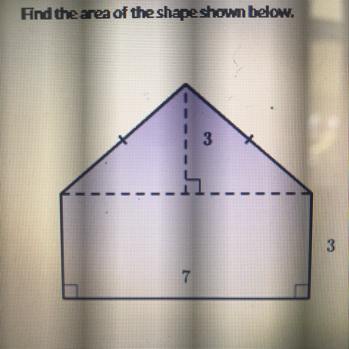 To solve the rectangle, you multiply b*h, or 3*7. The base is 21 units squared.