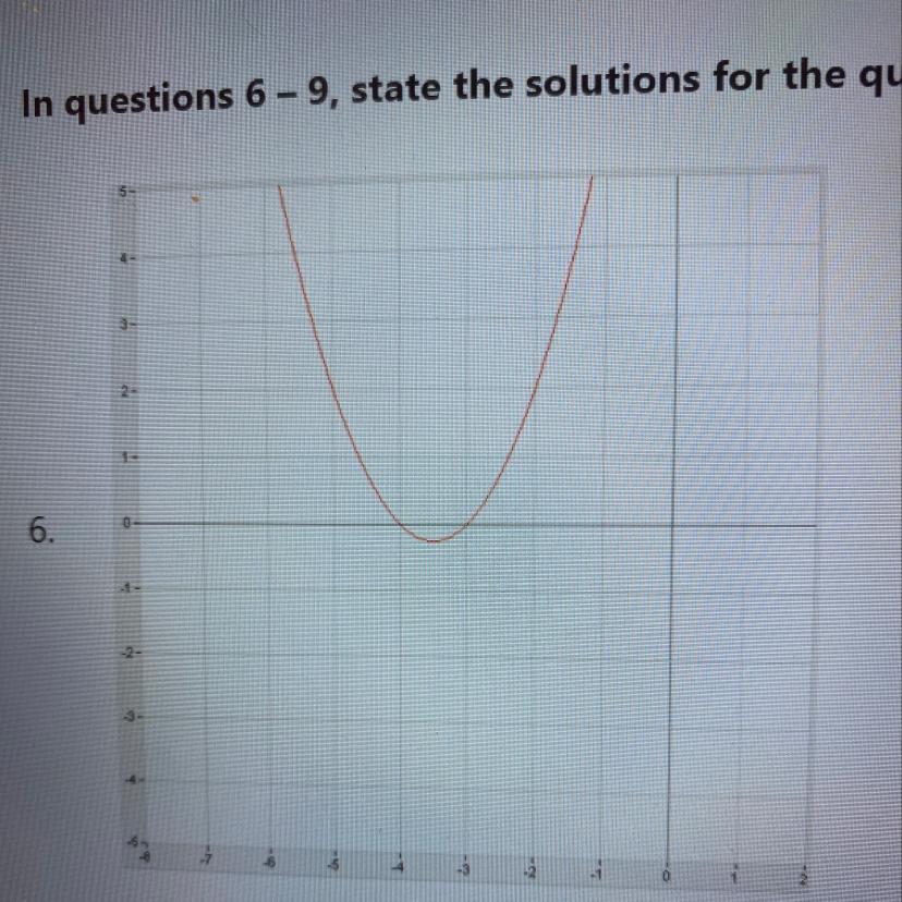 Therefore, our solutions for the graphed quadratic is x=-4 and x=-3.