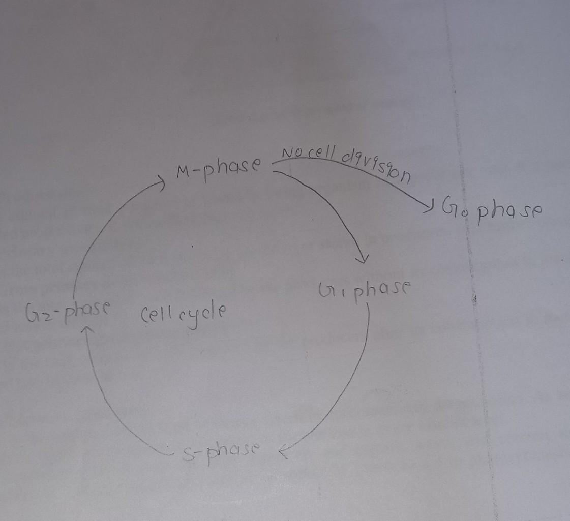 Cell cycle has 2 phases (i.e M-phase and Inter-phase). Interphase is considered to be the longest phase. Interphase also has G1-phase, S-phase and G2-phase. In cell cycle while moving from M-phase it has two option either to go in G1-phase or G0 phase. It it goes to G0-phase it doesn't go under cell division but if it goes to G1-phase it starts to prepare materials required to replicate or copy DNA. After preparing all the material it goes in S-phase and copies DNA. It doesn't go to G2-phase until it copies DNA perfectly. Then it goes to G2-phase. In this phase it prepares material for replication of other cell organelles.
