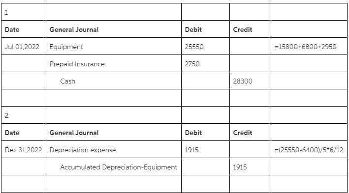 Dec 31,2022 Depreciation expense 1915 =(25550-6400)/5*6/12