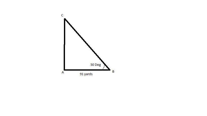 Let the reservoir is AC and Howard is standing at B and AB = 91 yards.