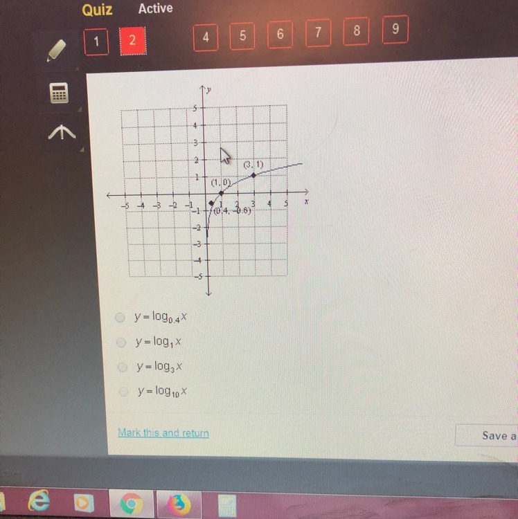 There are three points which are passing through the logarithmic function shown in the graph.