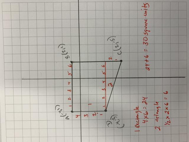 See attached picture. Break the shape up into two shapes, a rectangle and a triangle.