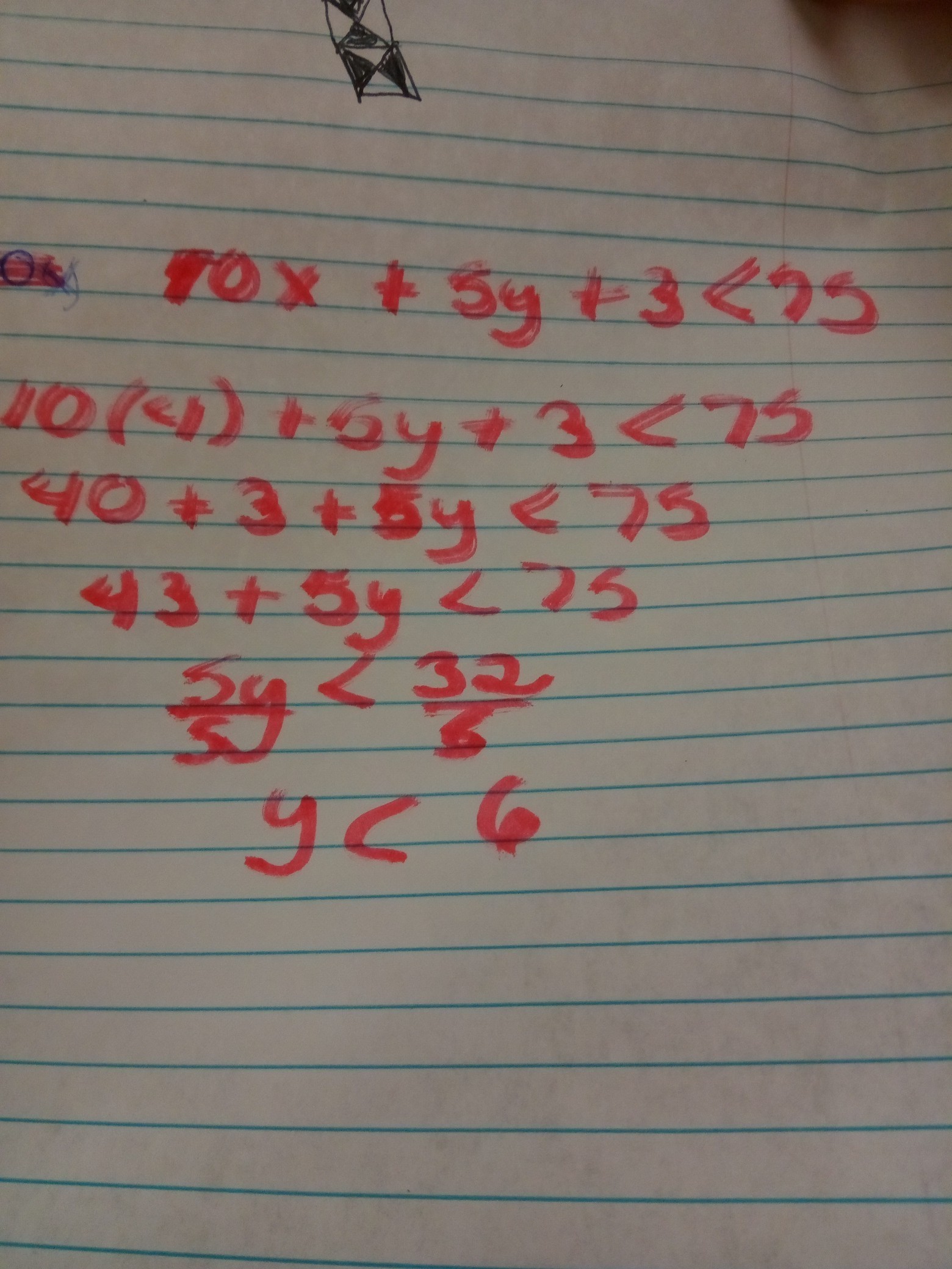 tire purchase. He has $75. He buys 4 tickets, and wants to figure out the maximum number of bags of popcorn he can buy. solve the inequality 10x+5y+3<75 where x= number of tickets and y= number of bags of popcorn to answer the question