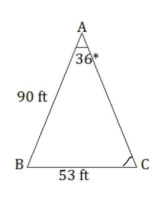 Smallest path (side BC) bordering the patch of grass measures 53 feet.
