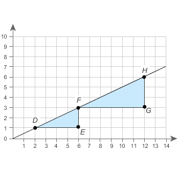 is defined as the rise over run. Side DF has the same slope as side FH. Sides DE
