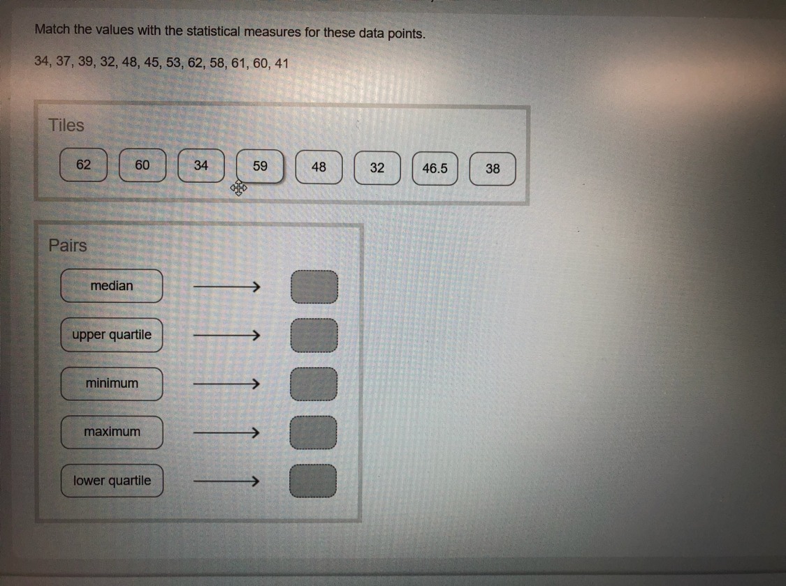 Upper quartile is the middle value of the upper half of numbers in the data set, The upper half of numbers are the numbers below the Median. Use same way as the median to find the value.
