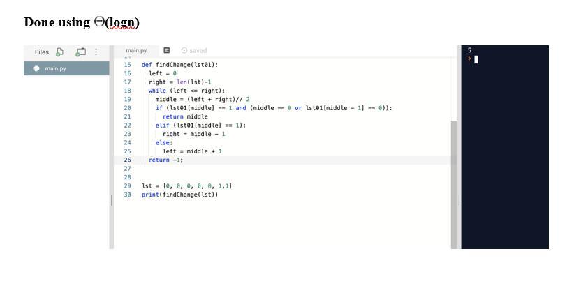 if (lst01[middle] == 1 and (middle == 0 or lst01[middle - 1] == 0)):