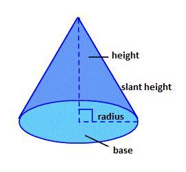 - The cone has three dimensions radius (r) , height (h) , slant height (l)