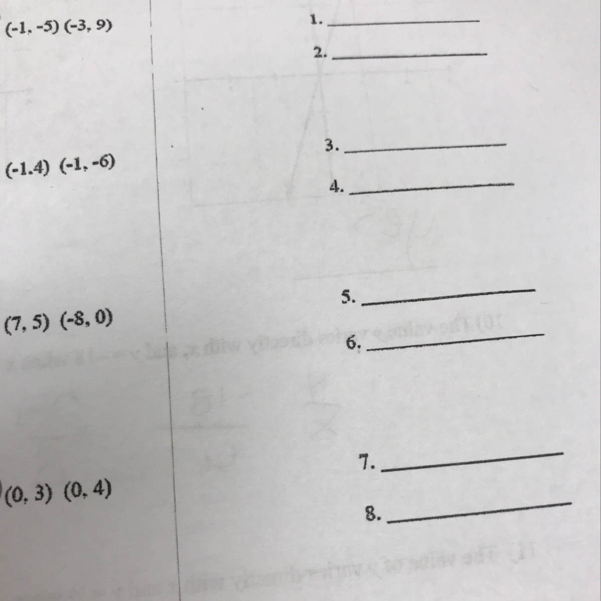 I believe that the answers for number 2 and number 4 is the slope is undefined.