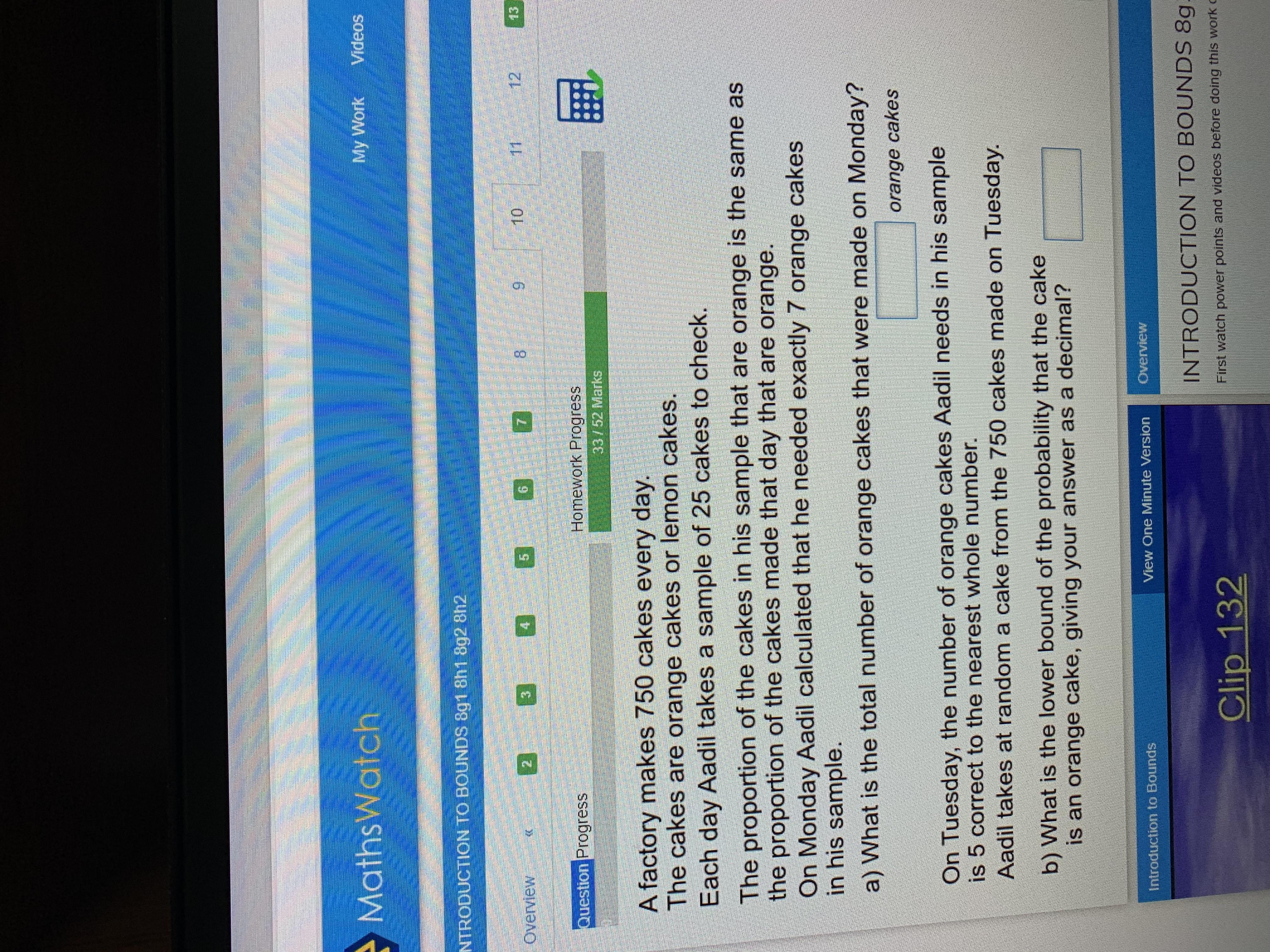 1b) The lowest number that will round to 5 is 4.5. The lowest probability that a cake is an orange cake is ...