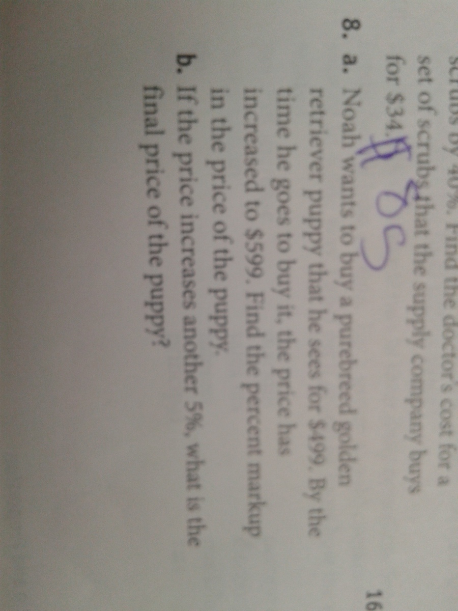 Noah wants to buy a purebed golden retriever puppy that he sees for $499.By the time he goes to buy it, the price has increased