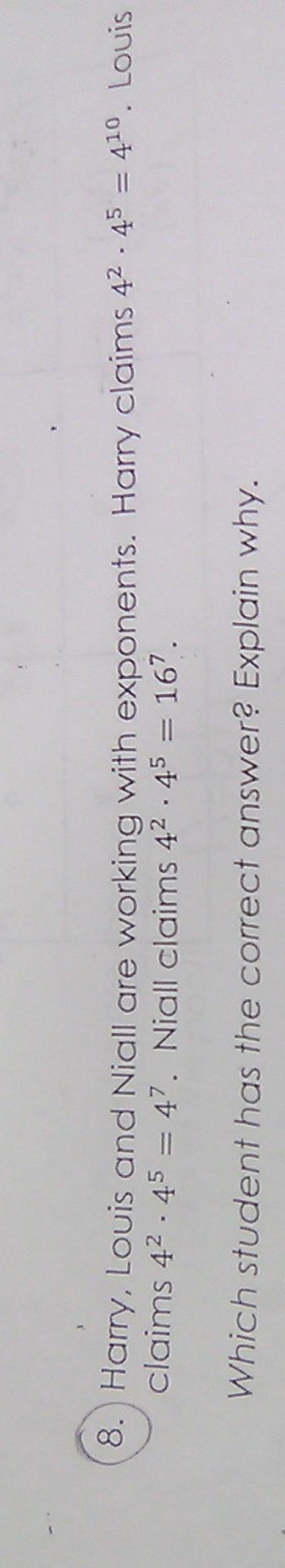 When you multiply exponents, you keep the number (4) the same and you add the exponents. So: