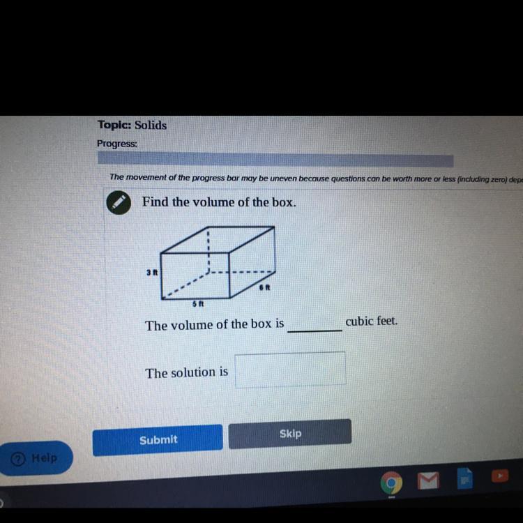 To get the volume, you have to do LxWxH so its 3x5x6=90