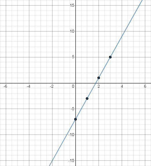 f(1) = 4(1) – 7 = 4 – 7 = –3 → (1, –3)
