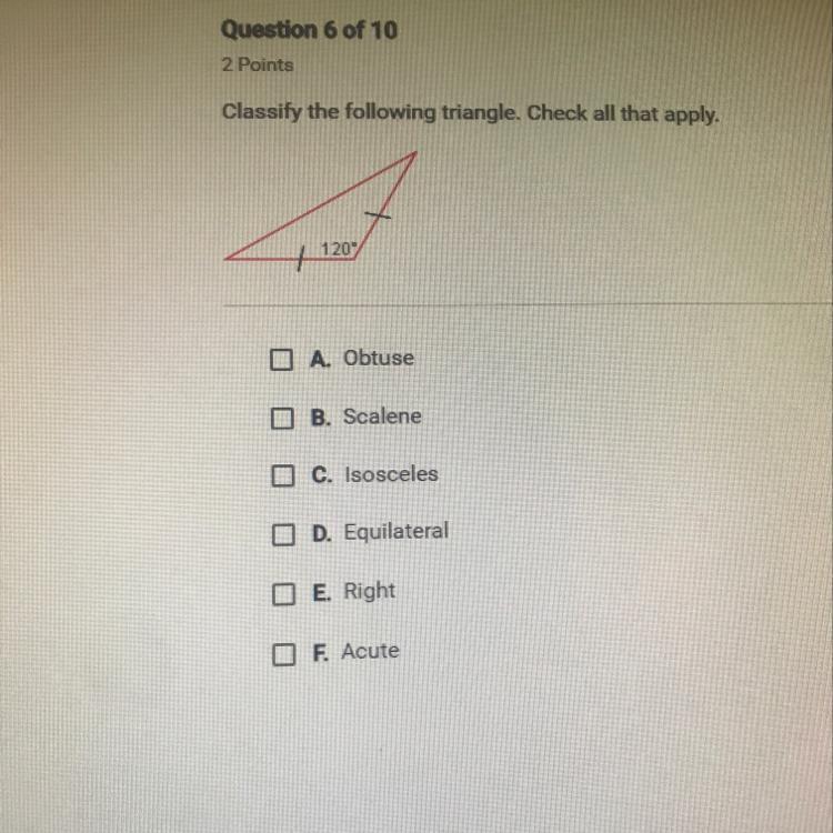 It's A because it's obtuse ( triangle which have measurement between 90 and 180)