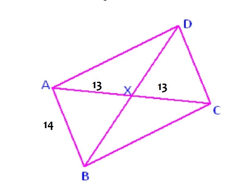 </span>AX<span> = </span>XC<span> = 13. triangle </span>ABX<span> is a right triangle with hypotenuse 14.