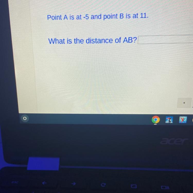 There are several ways to do this. But the way that would probably be easier for u to understand would be if you found the distance of -5 from 0. Remember targ distance is always positive so the distance would be 5 points. Then u have to get to point B or also 11. That means you have to move 11 points Altogether if you add 5 and 11 you get 16.