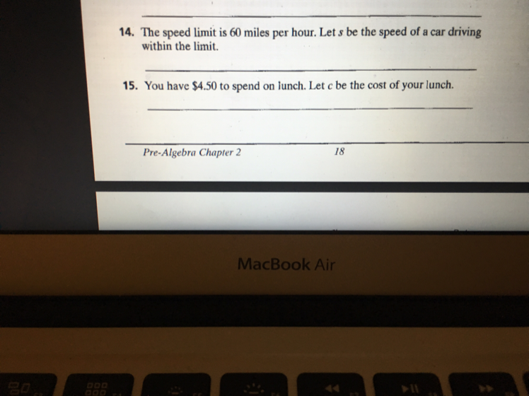Please help me with 14 and 15 please. You have to write an inequality for each situation